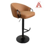 Upgrade your bar or kitchen counter with this elegant adjustable swivel bar stool by Adhunika Furnitures. The stool features a smooth tan leatherette upholstery that adds a warm, modern vibe to any setting. Designed with a curved backrest and black metal armrests for comfort and support, the stool also includes an easy-to-use height adjustment lever and a round base for added stability. The footrest ensures all-day relaxation, making it ideal for home bars, cafes, or office lounges. Background-free product design ensures a clean, premium presentation on your site.