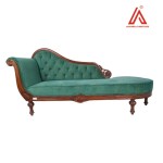 Add a regal touch to your home or office décor with this Antique Wooden Chaise Lounge from Adhunika Furnitures. Upholstered in plush green velvet, this piece features a classic button-tufted backrest and a beautifully carved solid wood frame that showcases traditional craftsmanship.