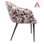Elevate your living space with this chic beige accent chair by Adhunika Furnitures. Designed for contemporary interiors, the chair features a soft beige seat, sleek curved arms, and a standout artistic geometric backrest in warm earthy tones. Supported by durable black legs, it strikes the perfect balance between style, comfort, and functionality. Whether placed in a living room, office, or café corner, this chair is sure to draw compliments and provide cozy seating.