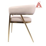 Elevate your space with the sleek sophistication of this beige luxury chair by Adhunika Furnitures. Designed with a premium faux leather finish, this chair features a clean, curved backrest paired with a radiant golden metal frame. The structured silhouette blends modern minimalism with timeless elegance — perfect for premium cafes, salons, reception areas, or contemporary home interiors.