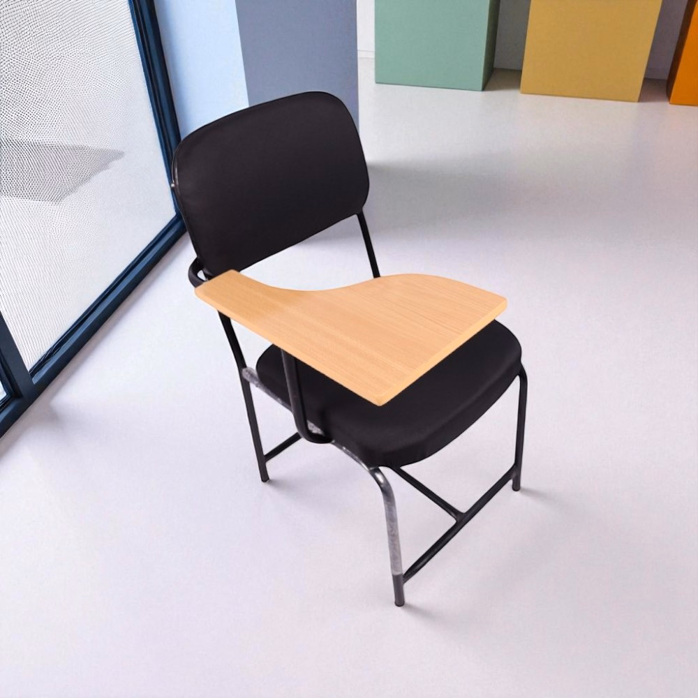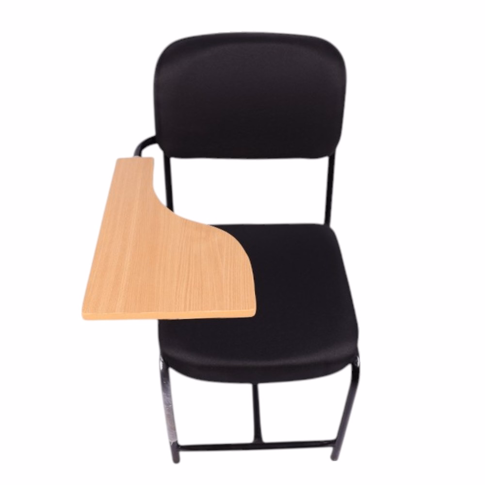 This heavy-duty writing pad chair is designed for comfort and long-term use in educational and professional spaces. It features a cushioned seat and backrest upholstered in durable black fabric, providing all-day support during lectures, exams, or study sessions.