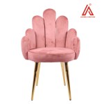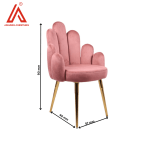 Introduce a touch of whimsy and luxury to your space with this stunning novelty accent chair. Shaped like a stylized hand, this chair merges art deco and modern design elements, making it a true statement piece. The chair is upholstered in a plush dusty pink velvet, offering both comfort and a soft, inviting texture. The one-piece seat and backrest design features five rounded “finger” protrusions, creating a unique and eye-catching silhouette. Supported by four tapered metal legs with a luxurious gold finish, this chair is not just a seating option but a work of art. Perfect for themed décor or as an accent piece in any room
