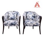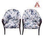 Bring elegance and comfort to any room with this beautifully upholstered barrel accent chair. Featuring a vibrant blue floral print and gracefully curved wooden arms and legs, this chair blends timeless style with cozy functionality. The ergonomic backrest and plush seat cushion make it ideal for lounges, bedrooms, and living areas that need a touch of personality.