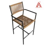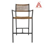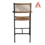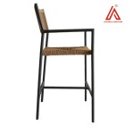 Elevate your bar or counter space with this handcrafted high bar chair. Made with a durable black metal frame and intricately woven rope seat and backrest, it blends rustic charm with modern sophistication. Designed with comfort in mind, it includes supportive armrests and a footrest bar. This chair is versatile enough for indoor and outdoor use, making it perfect for kitchen counters, cafes, patios, and more. Clean white background ensures a professional catalog appearance with no visual distractions.