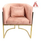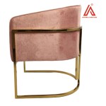 Add a touch of luxury to your space with our Pink Velvet Lounge Chair. Featuring a PVD golden frame and a unique bend-style back, this chair is perfect for lounging in the living room, adding sophistication to the office, or creating a cozy corner in the study room. With its low back design and sturdy construction, it offers both style and comfort for any setting