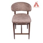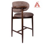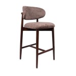 Elevate your home bar or kitchen island with this mid-century modern upholstered bar stool. Crafted with a sleek, minimalist walnut wood frame, it exudes timeless sophistication. The generously cushioned seat and curved backrest are upholstered in a soft textured fabric, offering both comfort and style. Designed to blend seamlessly with modern and retro-inspired décor, this stool is perfect for creating a cozy, elevated seating space. Please note: the design features a clean silhouette without any distracting background elements.