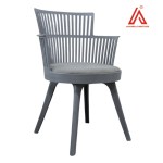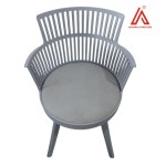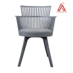 Designed for both style and comfort, this modern grey armchair by Adhunika Furnitures is a versatile addition to your interior or semi-outdoor seating area. Crafted with a durable molded frame, it features a unique vertical slatted backrest and integrated armrests for ergonomic support. The rounded cushioned seat provides added comfort for long seating sessions, making it ideal for dining areas, cafes, offices, or meeting lounges.