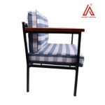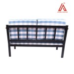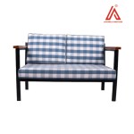Bring charm, comfort, and contemporary style to your space with this 2-Seater Modern Rustic Sofa, featuring a durable black metal frame, warm wooden armrests, and stylish light blue & white checkered cushions. Designed with clean lines and a blend of modern and rustic elements, this versatile loveseat is perfect for both indoor and covered outdoor spaces.