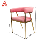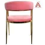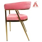 Elegant pink velvet cafe chair with a sturdy electroplated MS frame and stylish bend-style low back. Supports up to 90 kg, perfect for cafes, dining spaces, and modern interiors.