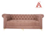 Introduce timeless elegance and luxurious comfort to your living space with this 3-Seater Chesterfield Sofa, beautifully upholstered in a soft light brownish-pink velvet fabric. Featuring traditional rolled arms, deep diamond tufting, and a compact yet classy silhouette, this sofa serves as a stunning statement piece for any living room, parlor, or boutique interior.